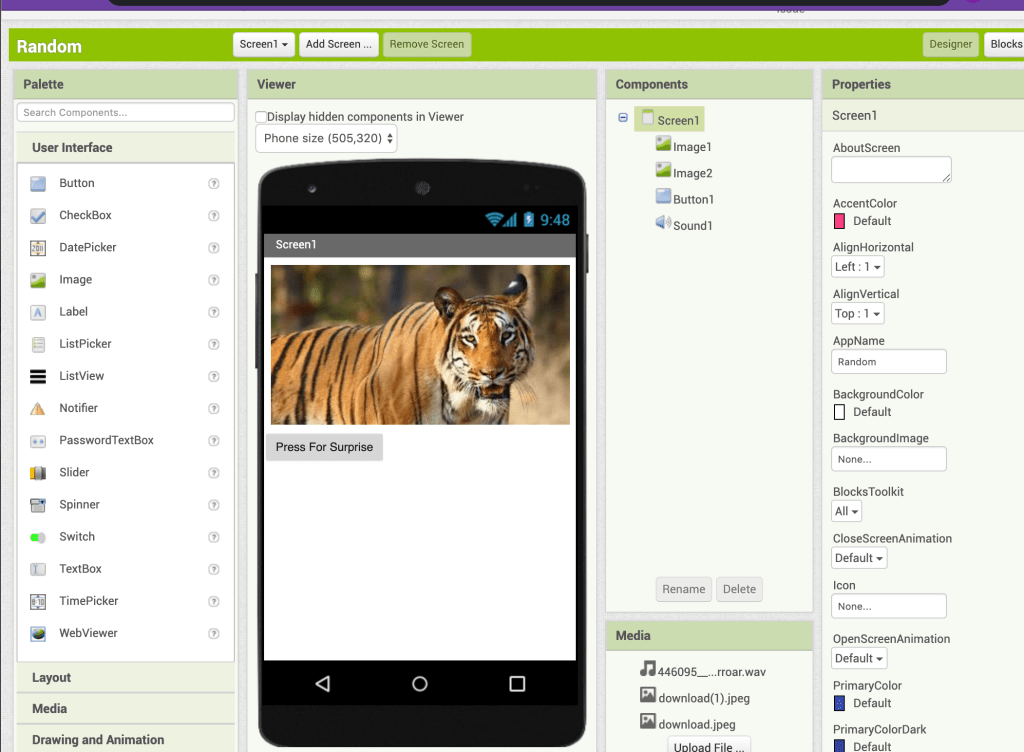 The app was finally able to work on the phone. The app considered of a tiger making a roaring noise when the button was pressed, and having the tiger’s roaring face appear by itself when the sound came on.