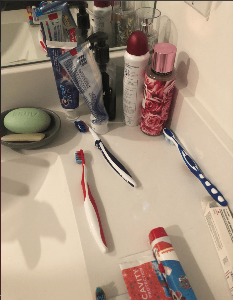 So for this assignment my problem is the fact that my mom has no place to put the toothbrushes and toothpaste and it makes the whole area pretty messy. It’s also pretty unsanitary since the part that goes in our mouth is touching another surface that already has germs. Besides that, water pools in that area, so my mom has to constantly clean it. We recently moved here and my mom has not bought a toothbrush holder because first all the things don’t fit and second because she doesn’t want to waste money on it. So I thought making a big toothbrush holder that also matches with the colors in the bathroom will be perfect solution for this. I feel like it would be pretty simple and as well save us money and a trip.